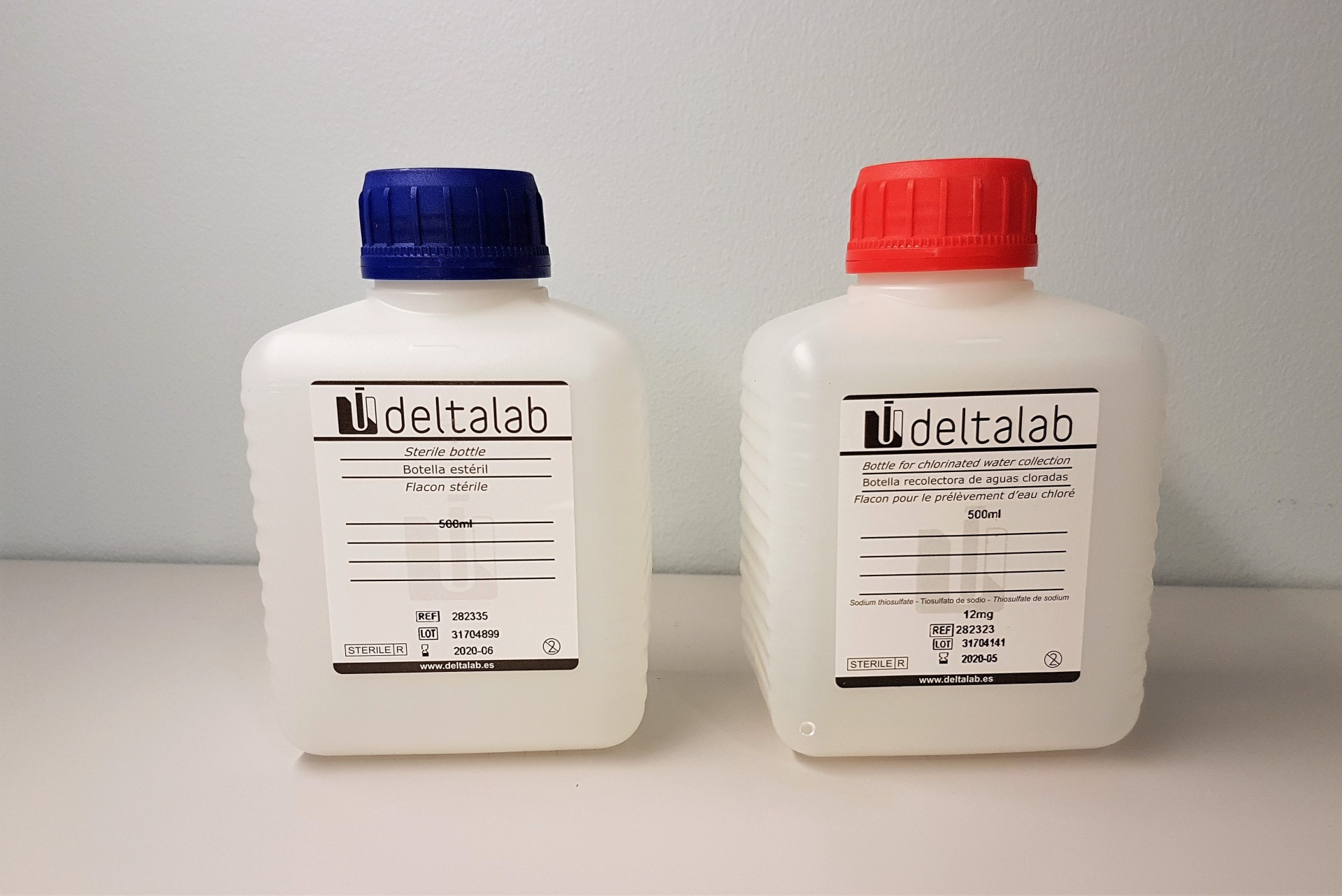 1000ml flaske med rød topp er også tilsatt thiosulfat. Denne flasken brukes hovedsaklig til to ulike formål; prøver av is og dusjanlegg. Tapen som sitter over lokket garanterer at flasken er uåpnet før bruk.